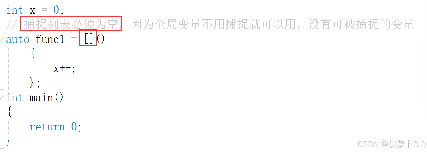 lambda表达式可以写到全局,但很少,因为全局变量不需要捕捉就可以直接使用,没有捕捉的变量,所以如果lambda表达式写在全局,捕捉列表必须为空