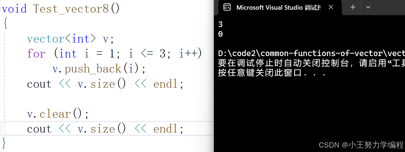 clear()用来清空vector中的所有元素,时间复杂度为O(N),N为vector中的元素个数: