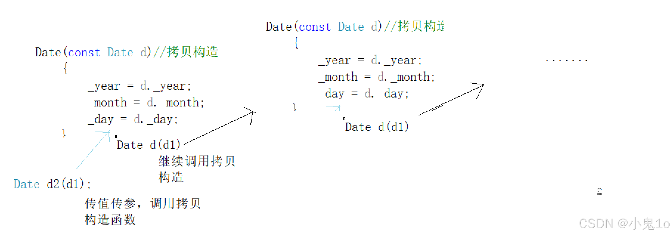Date d2(d1);//用d1拷贝构造出d2,也可以写成 Date d2=d1