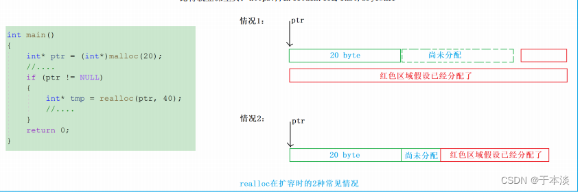 由于上述的两种情况,realloc函数的使⽤就要注意一些,如下:
