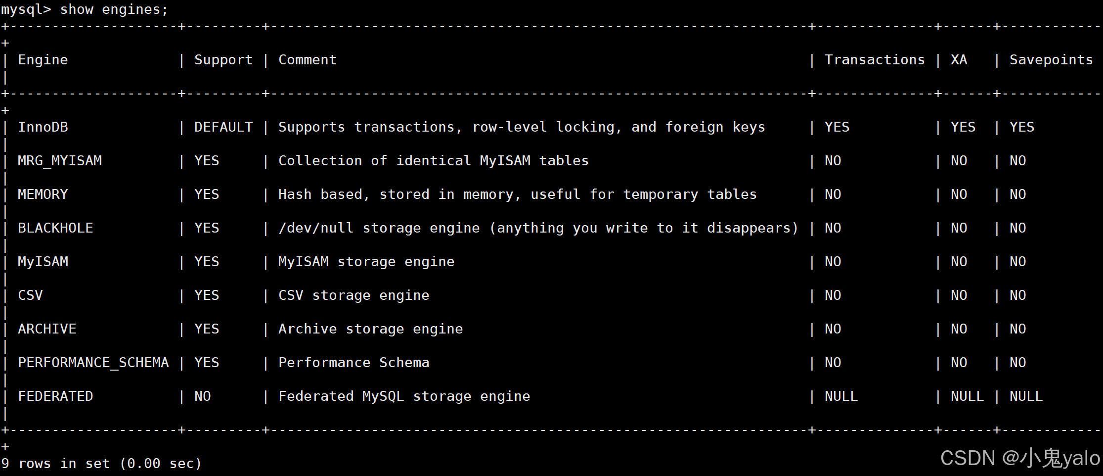 show engines;