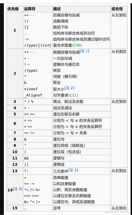 参考:https://zh.cppreference.com/w/c/language/operator_precedence