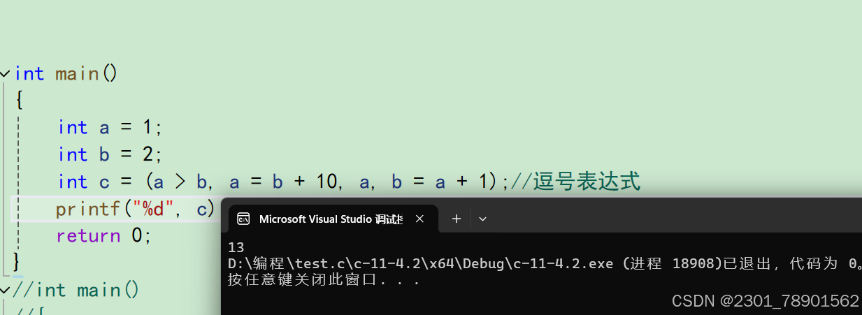 过程:逗号表达式,从左向右依次执⾏计算。整个表达式的结果是最后⼀个表达式的结果。