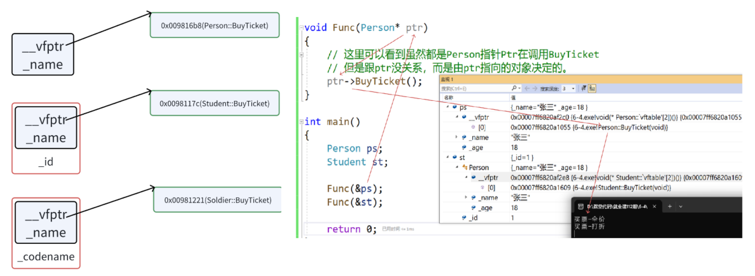 ptr->BuyTicket();//调⽤的函数是虚函数