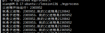 printf("我是父进程:%d,我的父进程是%d\n",getpid(),getppid());