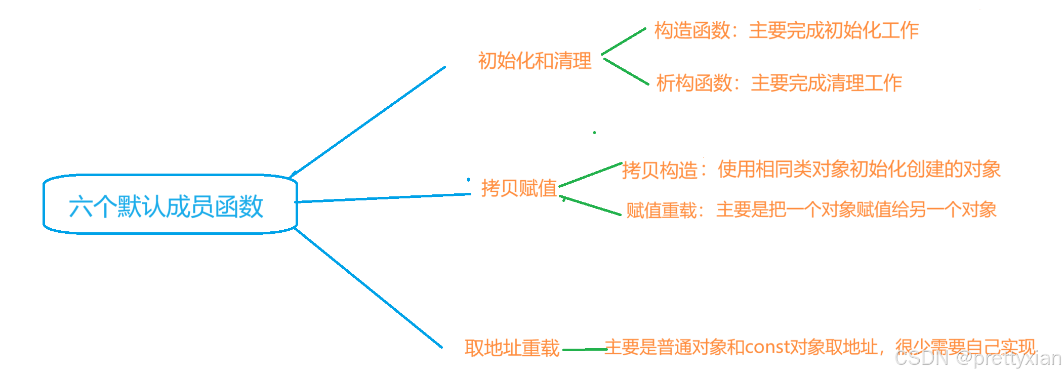 在C++中,如果你定义了一个类但没有显式地提供特定的成员函数(比如构造函数、析构函数、拷贝构造函数、拷贝赋值运算符等),编译器会为这些函数生成默认的实现。这些默认生成的成员函数称为类的默认成员函数。那么既然编译器会默认生成,那么我们学习什么呢?