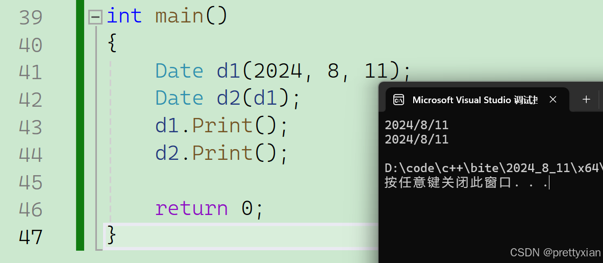 7. 如果类中没有申请资源时,析构函数可以不写,直接使用编译器生成的默认析构函数,如Date;如果默认生成的析构就可以用,也就不需要显示写析构,如MyQueue;但是有资源申请时,⼀定要自己写析构,否则会造成资源泄漏,如Stack。