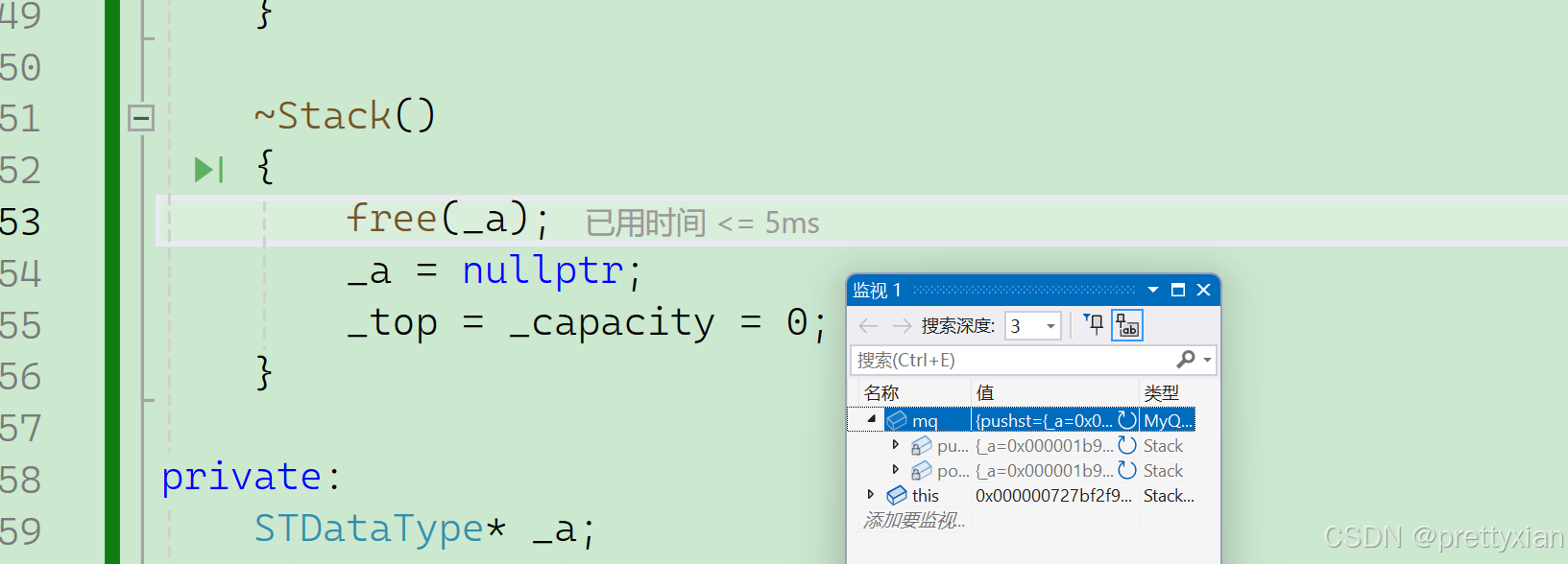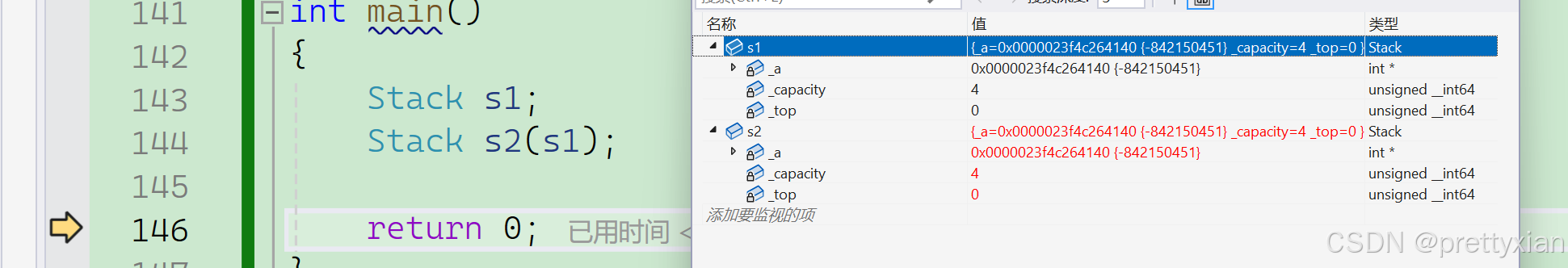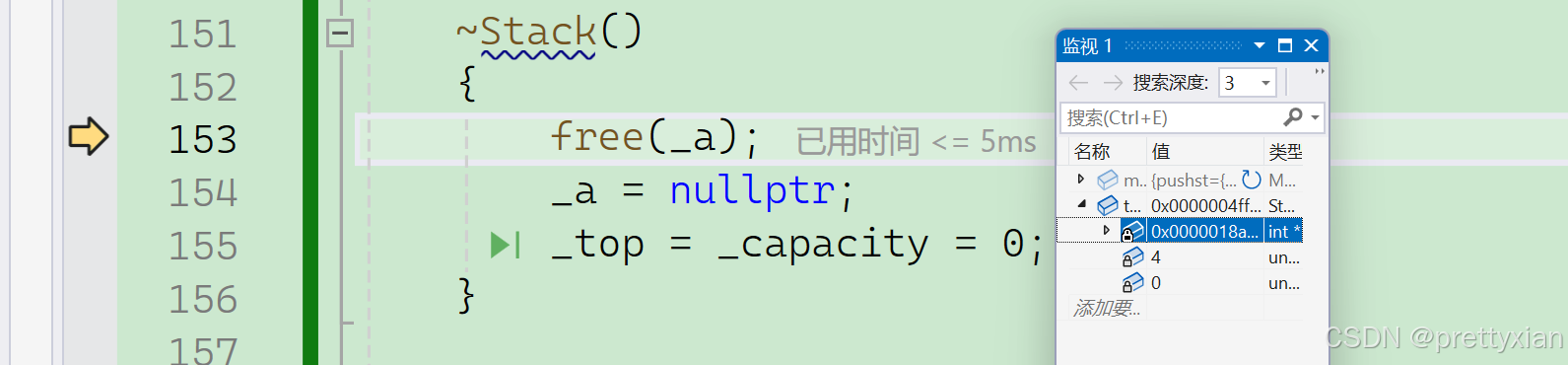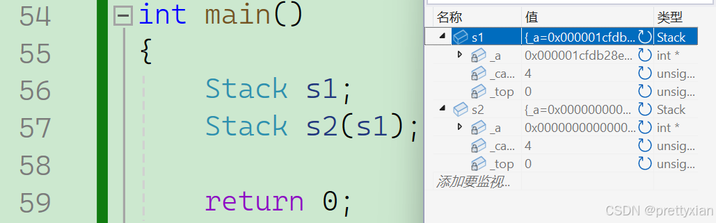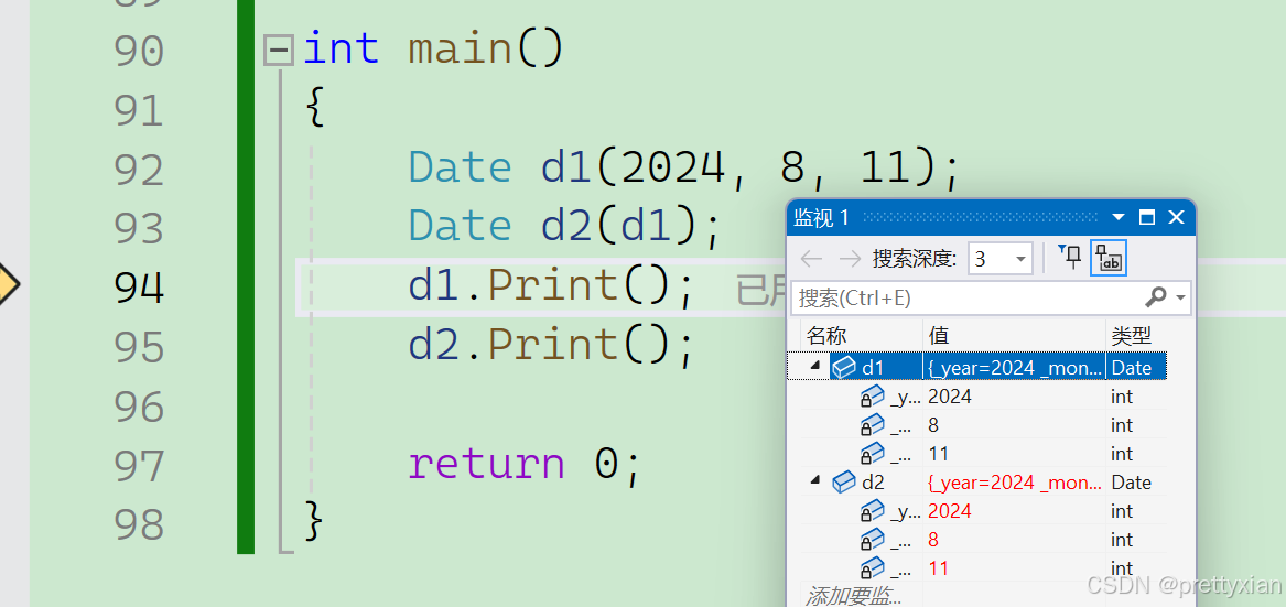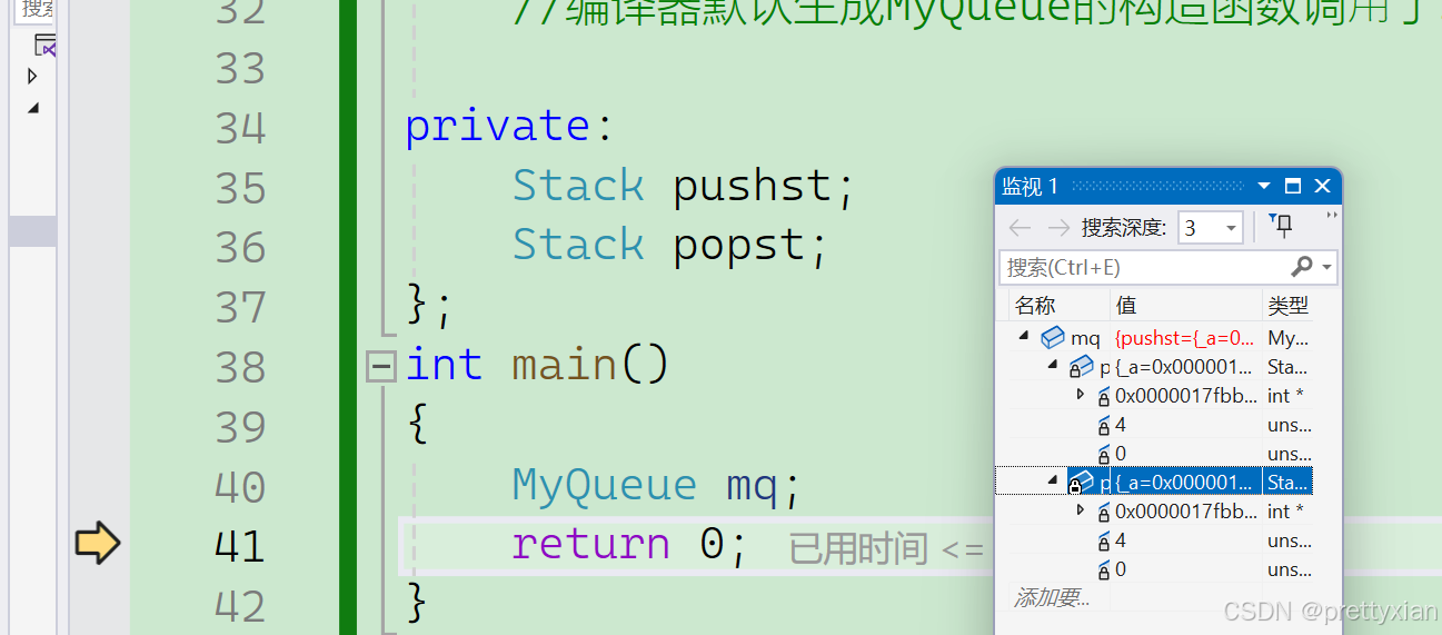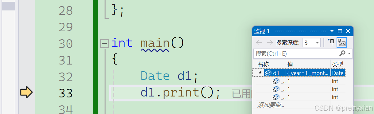 在监视窗口可以看到在实例化对象之后,构造函数已经被自动调用了。
