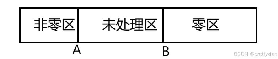 我们可以取标志位A和B,A之前的为非零区,AB之间是未处理区,B之后是零区。