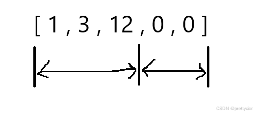 但是在处理未完成之前,必然存在着一个零和非零数共存的区域,所以在处理的过程当中一共有三个区域,0区,非0区和未处理区。要将整段数据划分成三个区域,那么我们需要几个标志位呢。取两个标志位就可以将代码分成三部分。