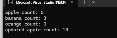 std::cout << "updated apple count: " << wordCounts["apple"] << std::endl; // 输出 10