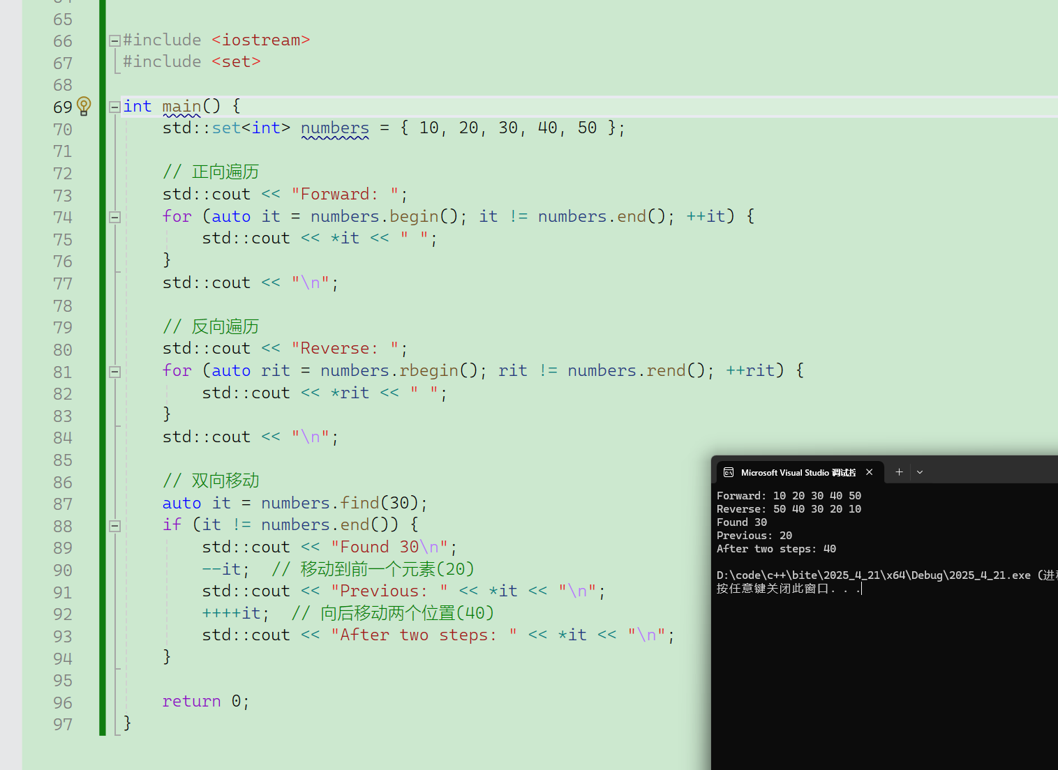 set的迭代器是双向迭代器,既能前移,又能后移。