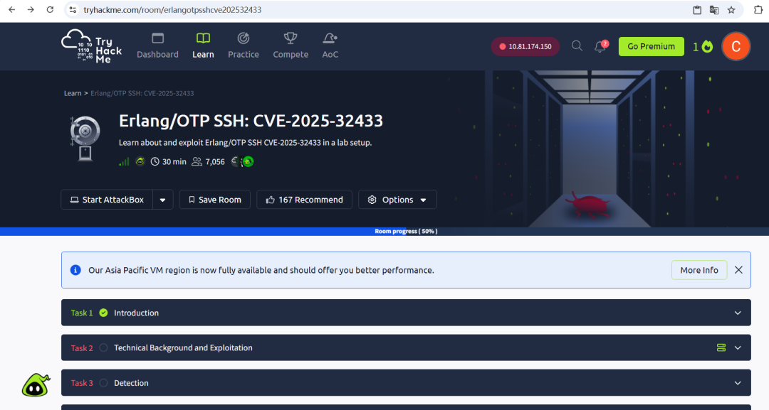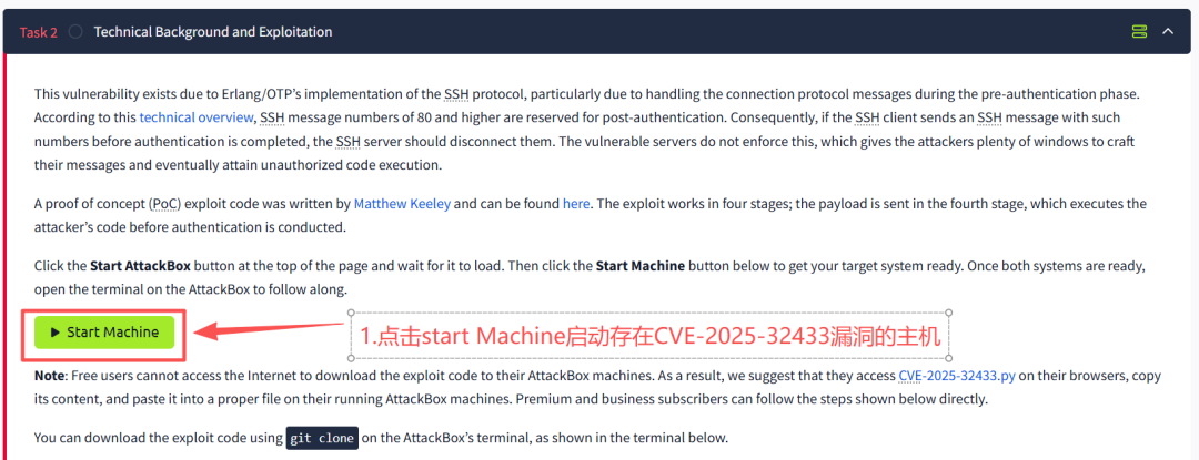 这里我们使用tryhackme实验环境(地址:https://tryhackme.com/room/erlangotpsshcve202532433)如下所示: