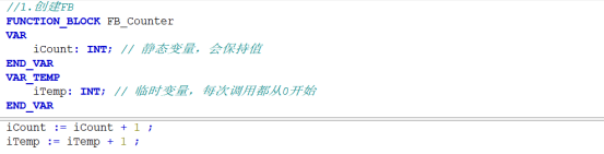 一般来说,临时变量只在VAR_TEMP,END_VAR之间,例如下图的iTemp变量: