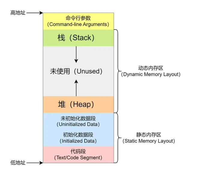 我们参照计算机里面对于内存的分配如下图所示: