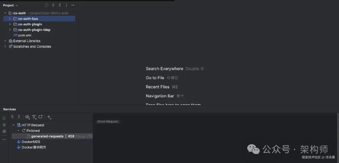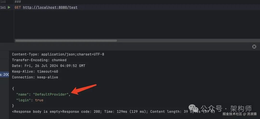 此时返回为默认实现,把cs-auth-plugin-ldap项目模拟的第三方包放到外部jar包加载目录,重新启动项目后发起请求