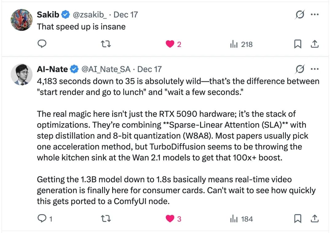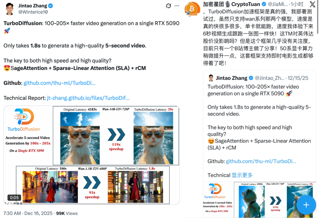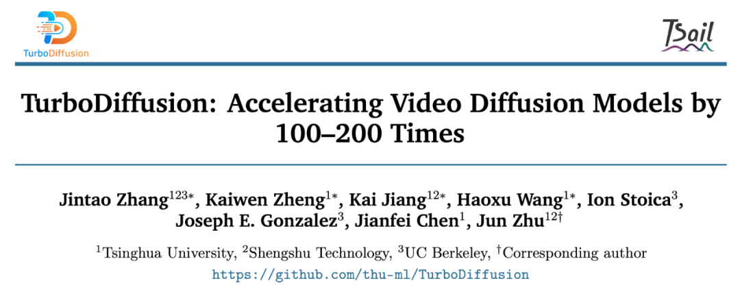 这个框架正是清华大学 TSAIL 团队与生数科技联合发布的 TurboDiffusion。