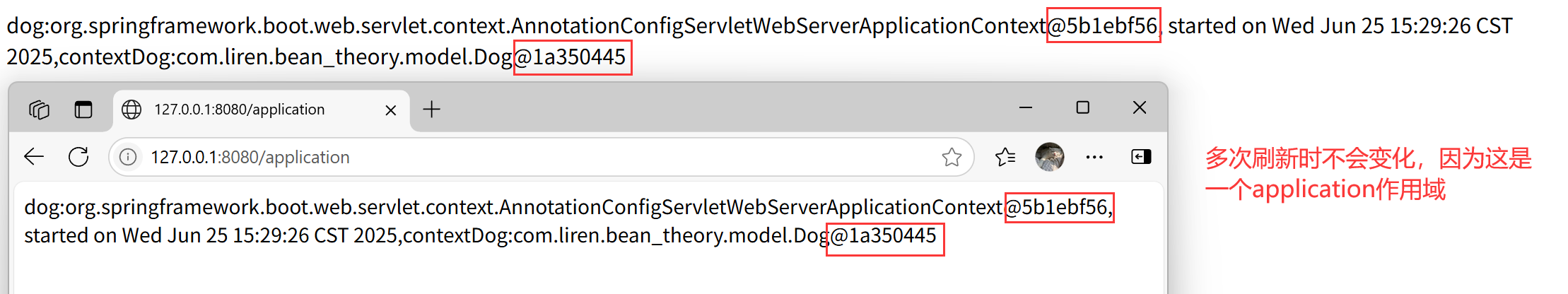 在一次请求中,@Autowired 和 applicationContext.getBean() 也是同一个对象。