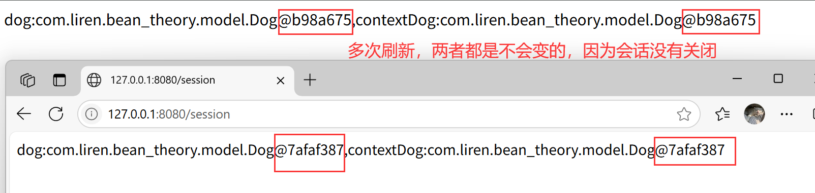 换一个浏览器访问,发现会重新创建对象。(另一个Session)