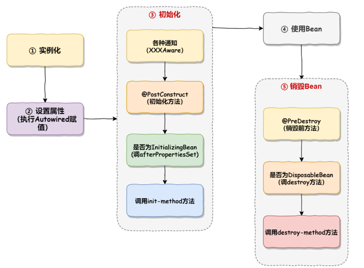 Bean的生命周期分为以下5个部分: