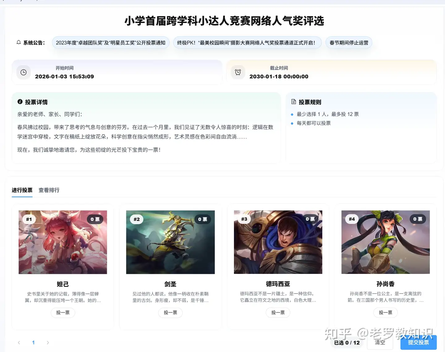 系统通过多角色权限控制,确保功能的多样化与操作的灵活性,适用于多种投票场景。