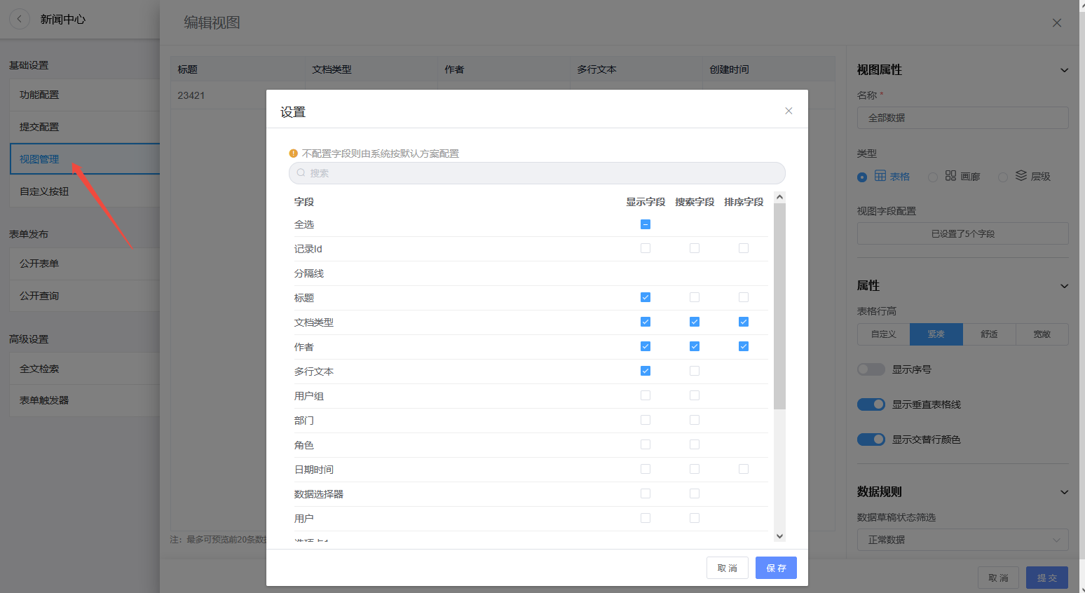 视图用来对数据进行管理的界面,进入视图管理界面,创建新的视图,如下: