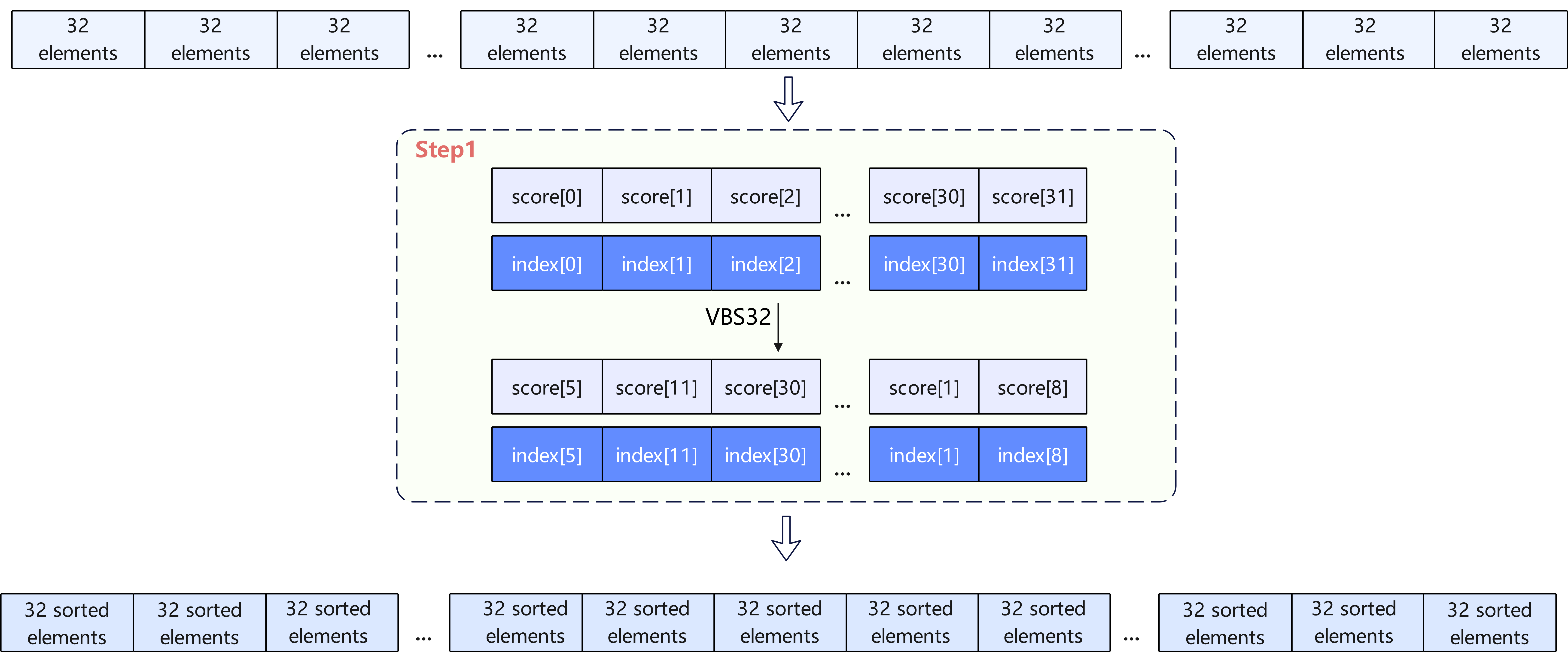 在获取所有 L 个分数后执行全局Top-K选择,如果采用简单排序或逐一比较,时间复杂度接近 O(L \log L)。对于几十万规模的元素,这是非常耗时的,而且传统排序难以充分利用向量化并行指令,Vector核可能运行效率低,拖累整体性能。