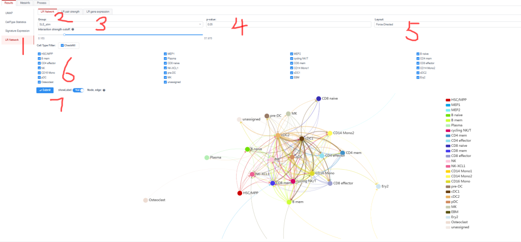 步骤10:LR网络分析:分析细胞相互作用-细胞通讯。3-6设置不同参数。