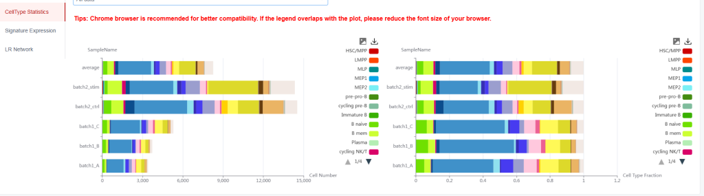 步骤6.查看不同样本中细胞亚群绝对数量与相对比例。