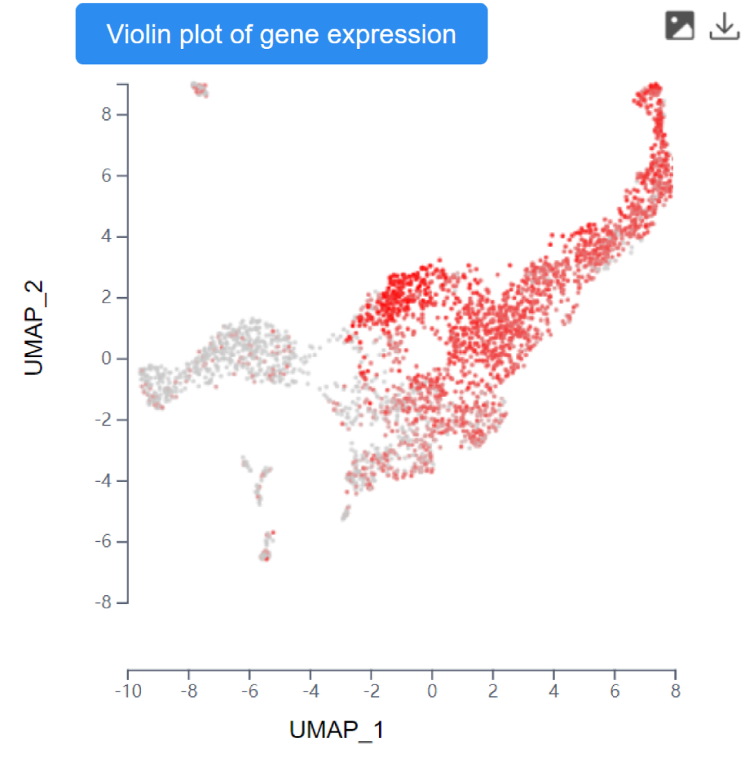 另一项功能是通过UMAP和小提琴图可视化基因表达。