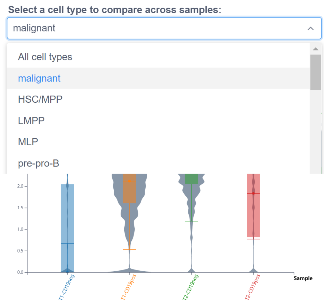 可在感兴趣的细胞类型中比较各样本的基因表达。