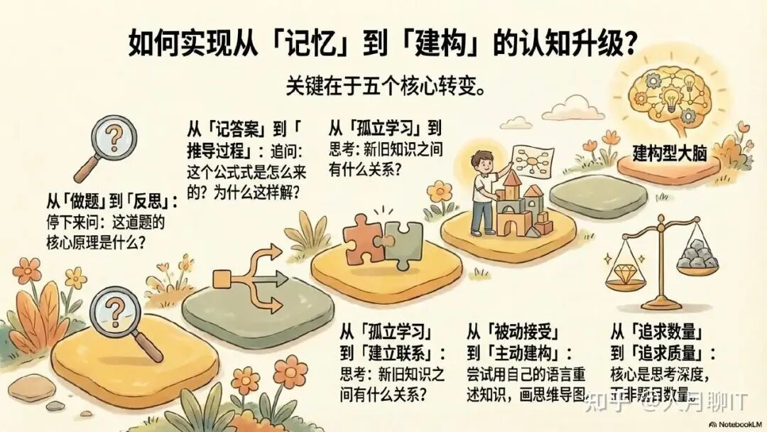 学习模式并非固定不变的。即使已经形成了记忆型学习习惯,也可以通过系统的训练转向建构型学习。关键在于以下几个转变: