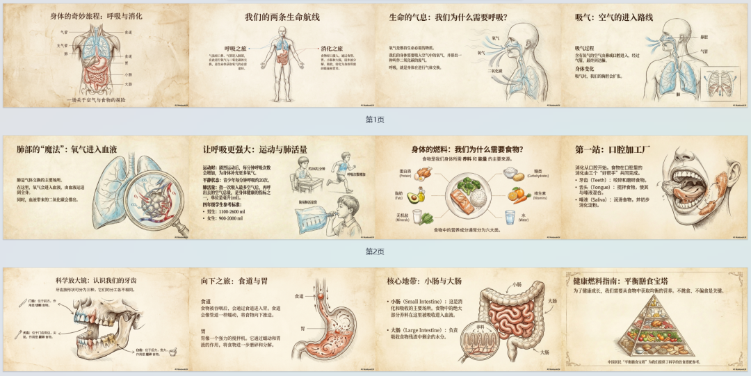 如何将要学习的内容进一步形象化和可视化,这个又是可以借助AI辅助最佳的地方。类似在学习小学科学知识的时候,涉及到声音和消化这些章节的时候,我们可以通过NotebookLM输出完整的辅导学习材料,如下: