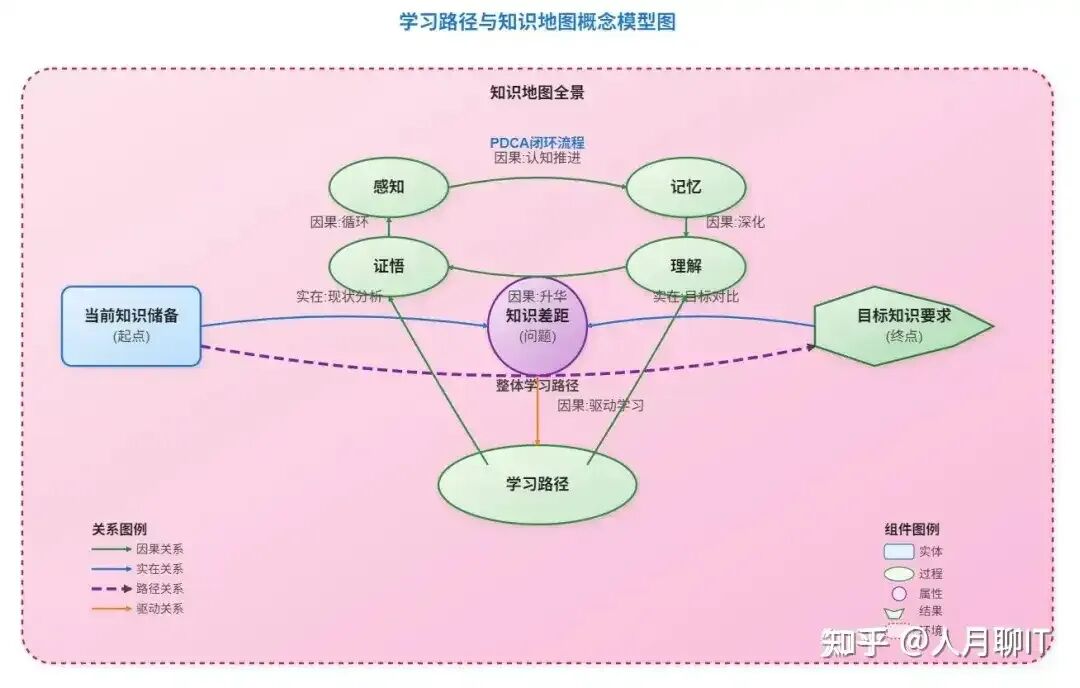 在构建知识体系时,我把概念、结构、逻辑三层作为本质,把知识拆成可复用的组件,再按场景快速组装。纵向以全生命周期的战略规划、设计、实施、运维串成价值链,横向以业务、数据、技术、管理分层解耦,形成矩阵式知识地图。地图告诉我边界和坐标,学习路径则基于差距设计可行路线。