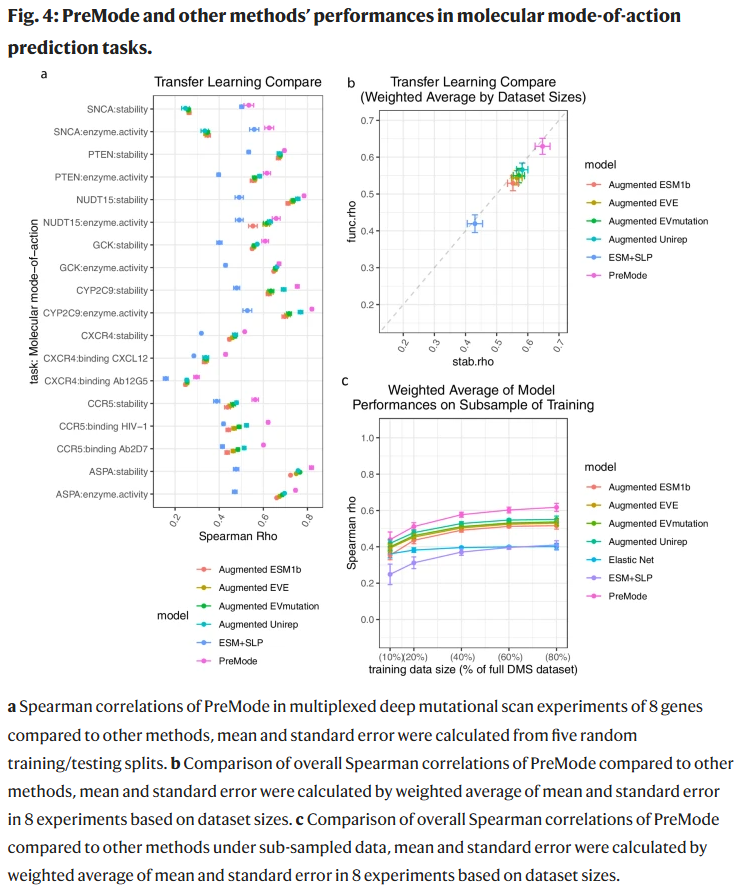 在 8 个基因的多维功能实验上,PreMode 的预测与实验结果的 Spearman 相关系数达到 0.6,显著优于现有方法。即使在训练数据缩减至 20% 时,PreMode 也保持领先性能。该模型还可用于识别实验测
