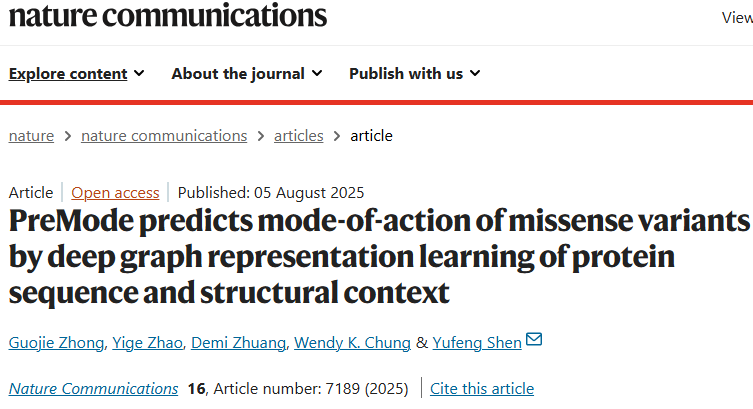 Zhong, G., Zhao, Y., Zhuang, D. et al. PreMode predicts mode-of-action of missense variants by deep graph representation learning of protein sequence and structural context. Nat Commun 16, 7189 (2025).