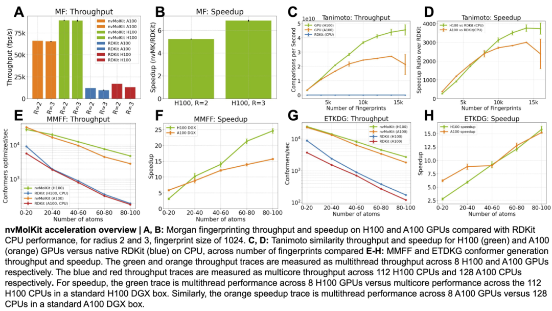 为此,研究团队与 RDKit 开发者紧密合作,将关键函数迁移到 GPU 上,并显著加速其性能,推出了独立库 nvMolKit。