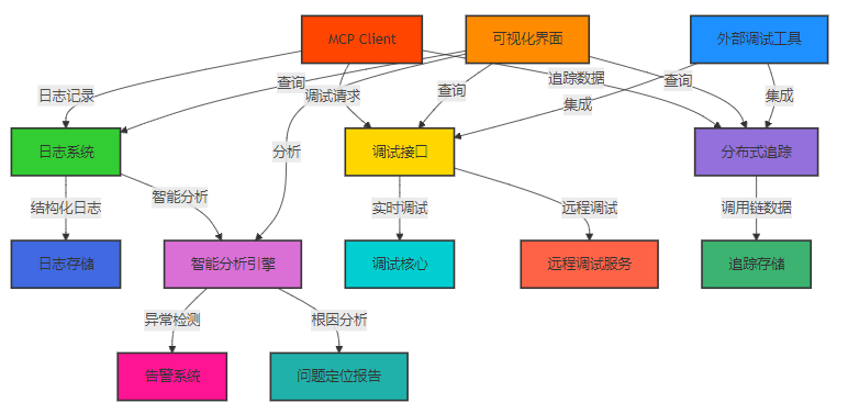 Mermaid 架构图:MCP Client 调试与问题定位架构