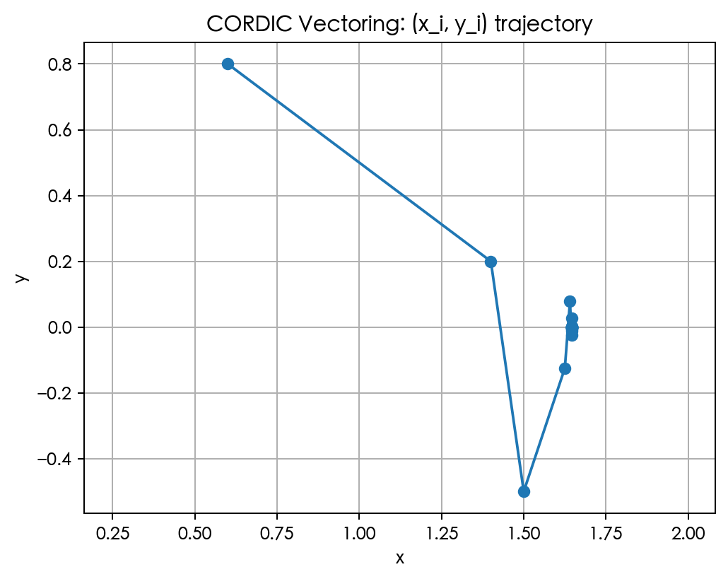 CORDIC 的数学核心是“坐标旋转法”: