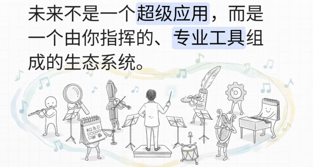 上面的介绍只是管窥之说,AI工具的未来并非走向一个无所不能的“超级应用”,而是由各自专精的工具(如“侦察兵”和“图书管理员”)组成的无缝协作生态系统。我们工作的重点,也将从单纯地向AI提问,转变为更高级的策略设计。