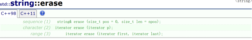 void erase(size_t pos, size_t len = npos);