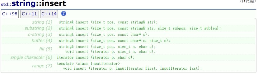 void insert(size_t pos, const char* str);