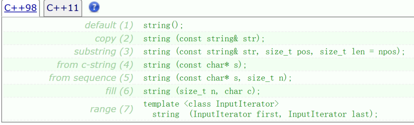 在 C++98 中,string 构造函数有 7 个,先讲前 6 个: