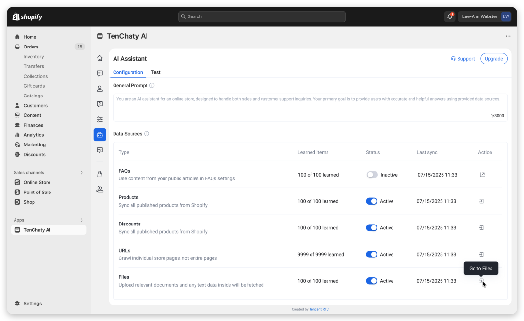 上传后 TenChaty AI 会对文件内容进行学习(Learn),并用于后续对话回答。