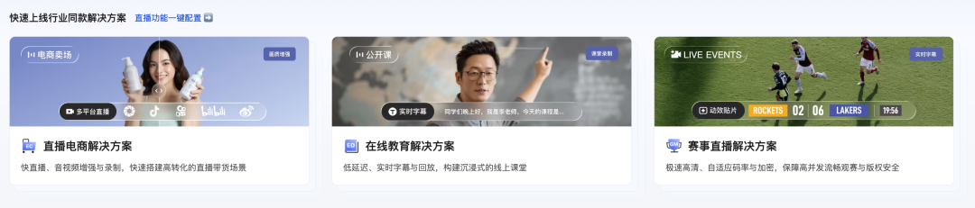 • 强化场景化方案:针对游戏直播、电商带货、在线教育、体育赛事等全球热门场景,提供经过国内超大规模实践验证的架构方案与数据指标。