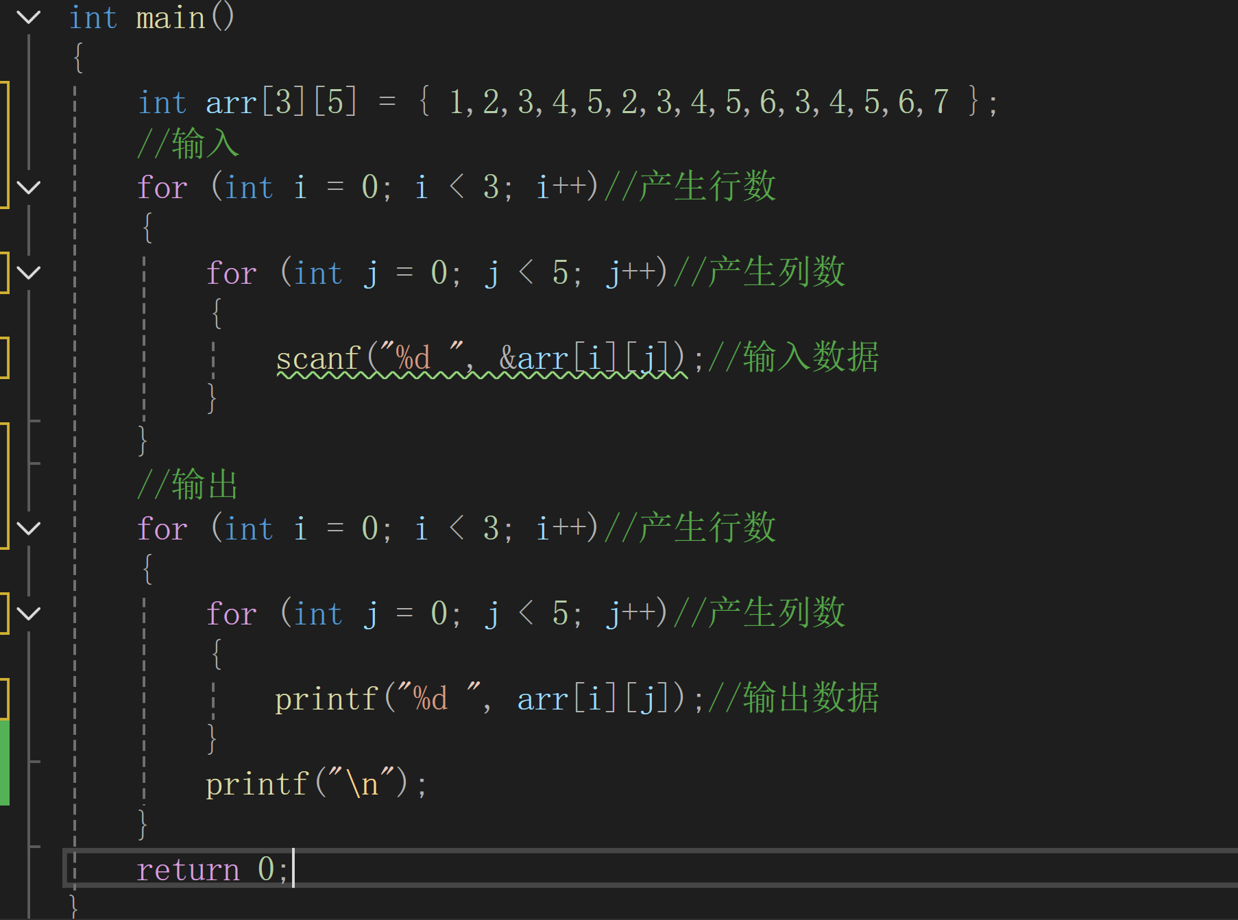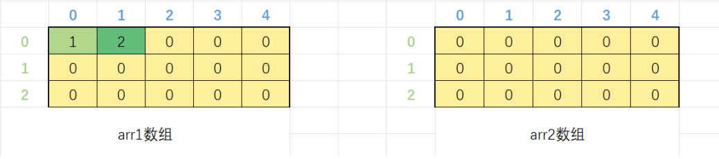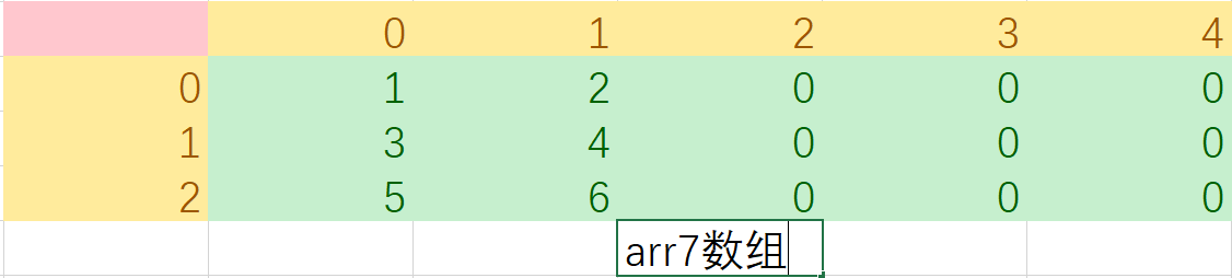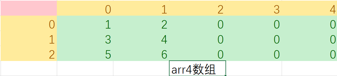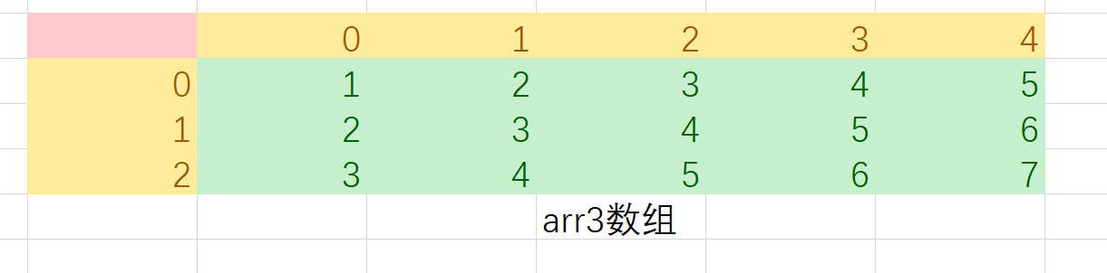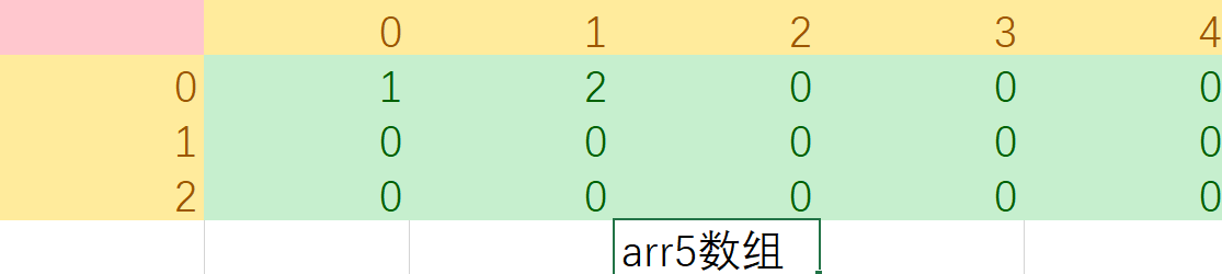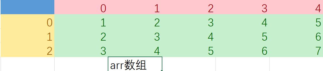 其实我们只要能够按照⼀定的规律产⽣所有的⾏和列的数字就⾏;以上⼀段代码中的arr数组为例,⾏的选择范围是0~2,列的取值范围是0~4,所以我们可以借助循环实现⽣成所有的下标。