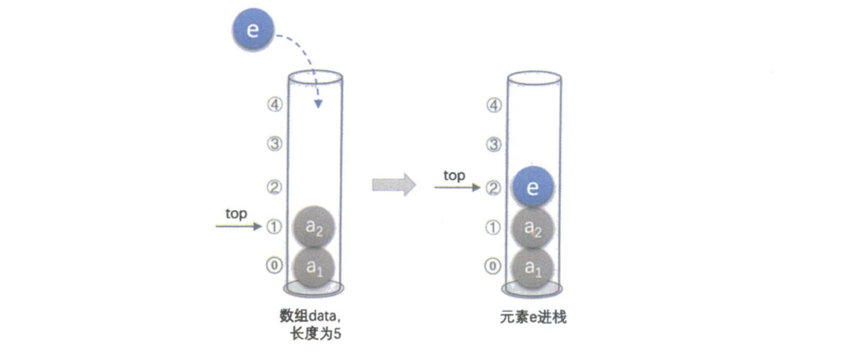 (图注:演示了元素 e 如何被压入栈顶的过程。)