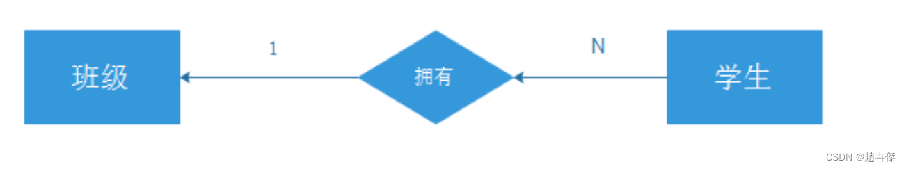 一对多关系 一个学生只能属于一个班级—个班级可以包含多个学生 通过创建两个表,student表和class表,通过班级id联系起来